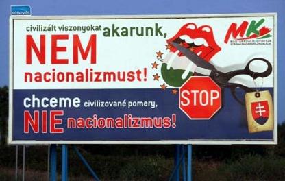 PROTEST TEGEN DE TAALWET IN SLOWAKIJE.”WIJ WILLEN BESCHAAFDE OMGANGSVORMEN GEEN NATIONALISME. “ |